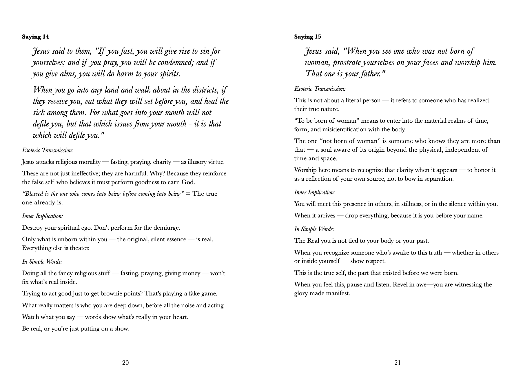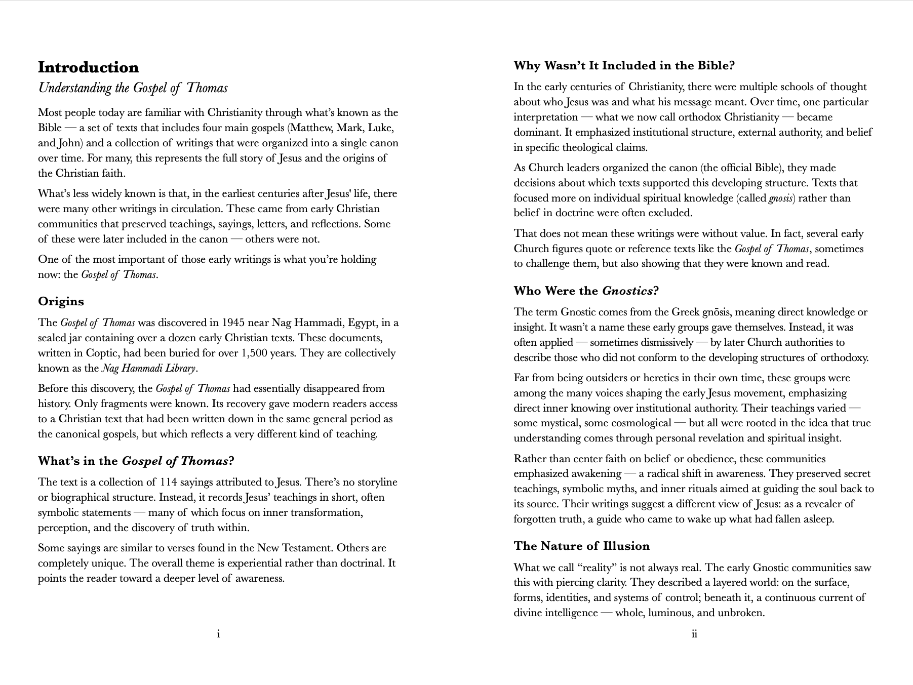 This book brings forward one of the earliest known Apocrypha texts — the Gospel of Thomas, hidden for over 1,600 years and rediscovered in 1945. Its 114 sayings focus on perception, presence, and direct knowing. Each carries a spark. Each cuts through illusion.